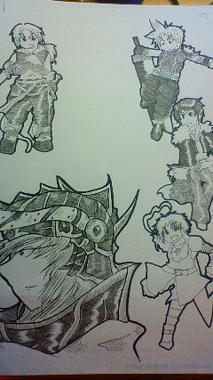で、同時並行でトーン貼りとガーディアンイメージを描いてます。とりあえずモデルイラストは全員終わり、これから本書きの下書きです。モデルイラストって言うのは大体の構成ね、結構ガーディアンと睨めっこしながら描いているのが好き。