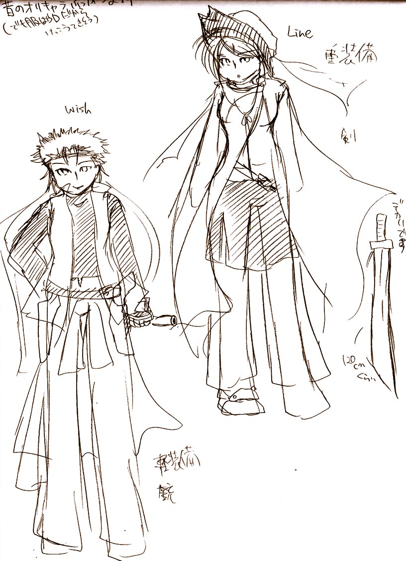 昔のオリキャラたち(みなぎさんの大復活祭的なイメージで)。ラインとウィッ主です。15歳くらいの終わりのとき考えて没った。このころからウェスタンが好きだったんだなぁ。