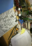 あと半分くらいでソールとマーニのイラストが終わります。少し後ろガリガリ書いておこう。塗るのは結構一気にやっちゃいたいしね。