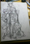 アタリ描き(下書きのだいぶだいぶ前):ソールとマーニ(北欧神話バージョン)